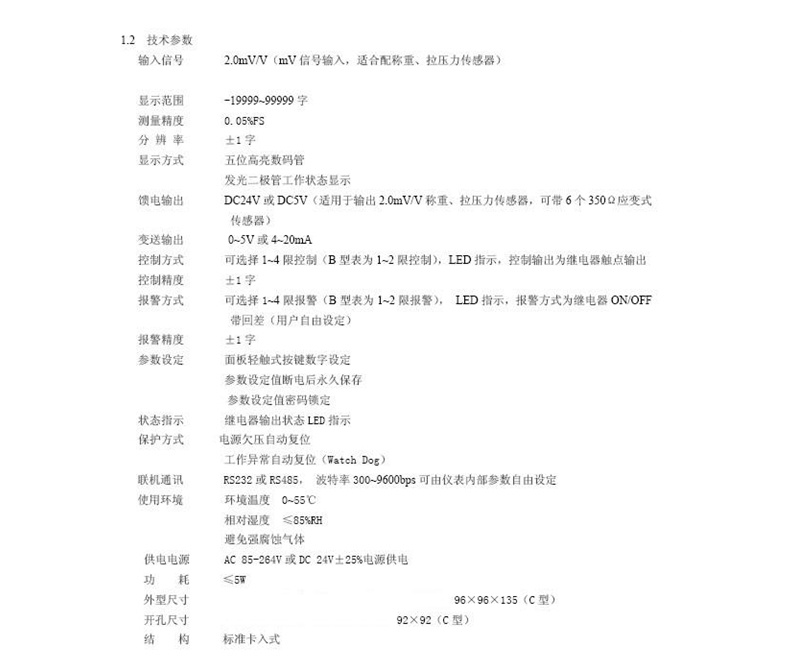 Signal input : 0~20mV or 2.0mV/V