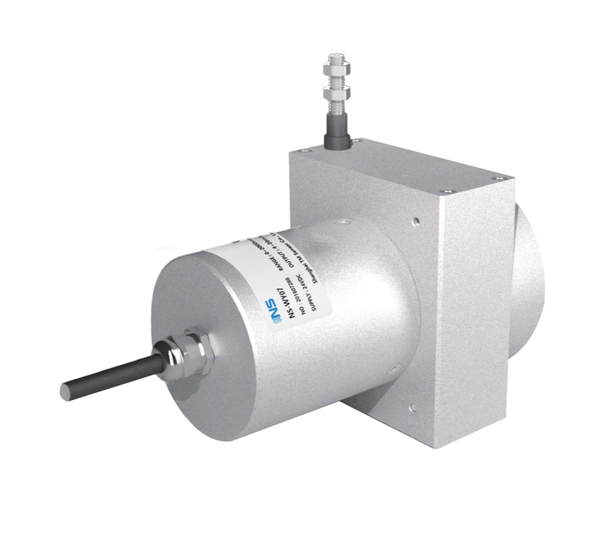 操作上,拉繩位移傳感器安裝在固定位置上,拉繩縛在移動物體上。拉繩直線運動和移動物體運動軸線對準。運動發生時,拉繩伸展和收縮。一個內部彈簧保證拉繩的張緊度不變。帶螺紋的輪轂帶動精密旋轉感應器旋轉,輸出一個與拉繩移動距離成比例的電信號。測量輸出信號可以得出運動物體的位移、方向或速率。