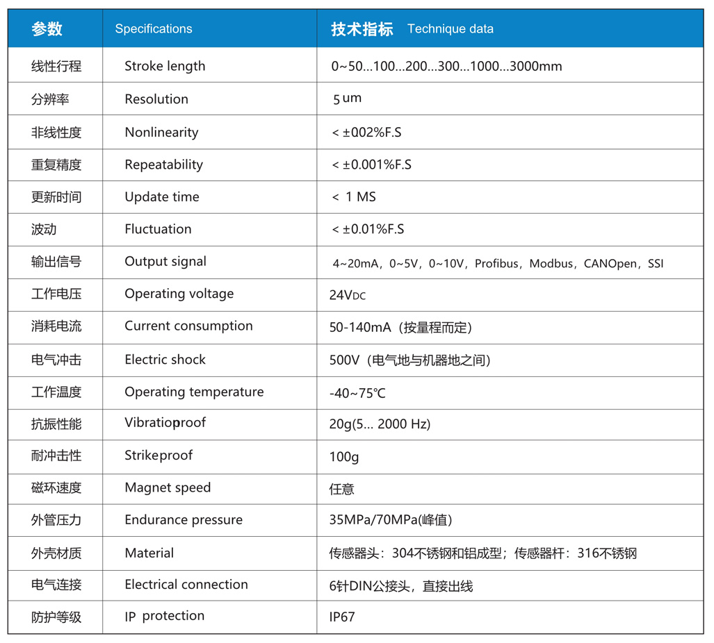 NS-WY08G系列 磁致伸縮位移傳感器