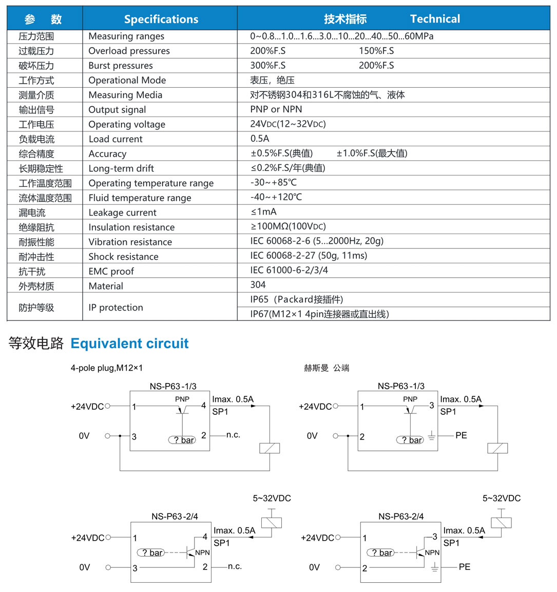 NS-P63 系列 壓力開關